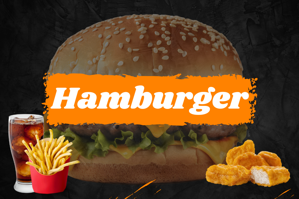 A burger is a sandwich consisting of a patty (usually beef) cooked to perfection, nestled between a sliced bun, and complemented with fresh toppings like lettuce, tomato, onion, cheese, and flavorful sauces -